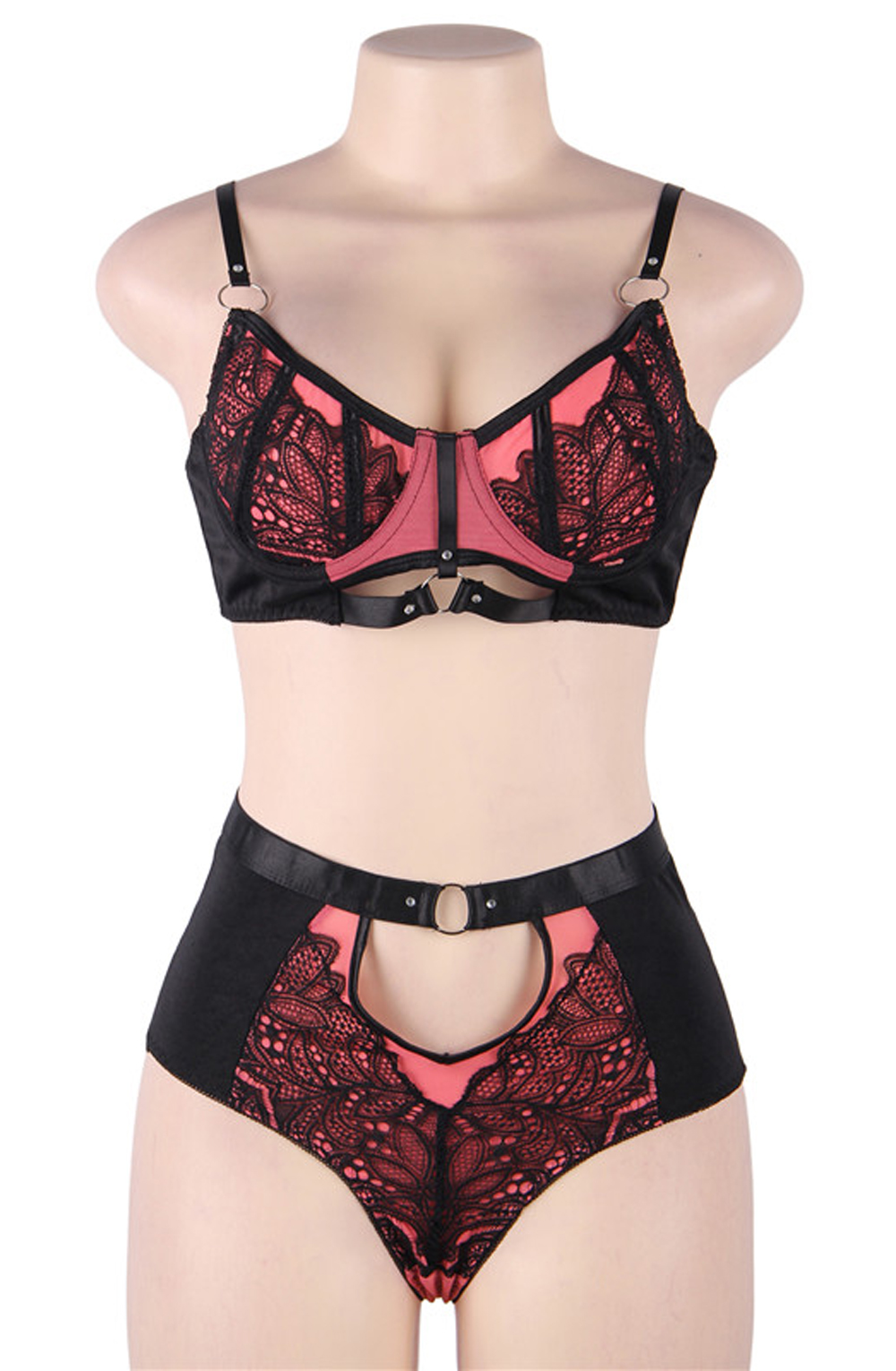 This is a Stock Line productBeautiful two piece bra set. The bra is underwired, adjustable and decorated with black lace across the cups. The matching brief is also included. Item arrives packaged in a Yesx Satin bag.