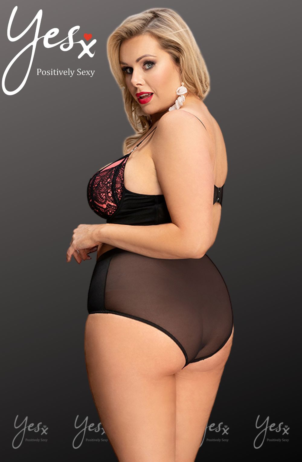 Beautiful two piece bra set.  The bra is underwired, adjustable and decorated with black lace across the cups.  The matching brief is also included.   Item arrives packaged in a Yesx Satin bag.